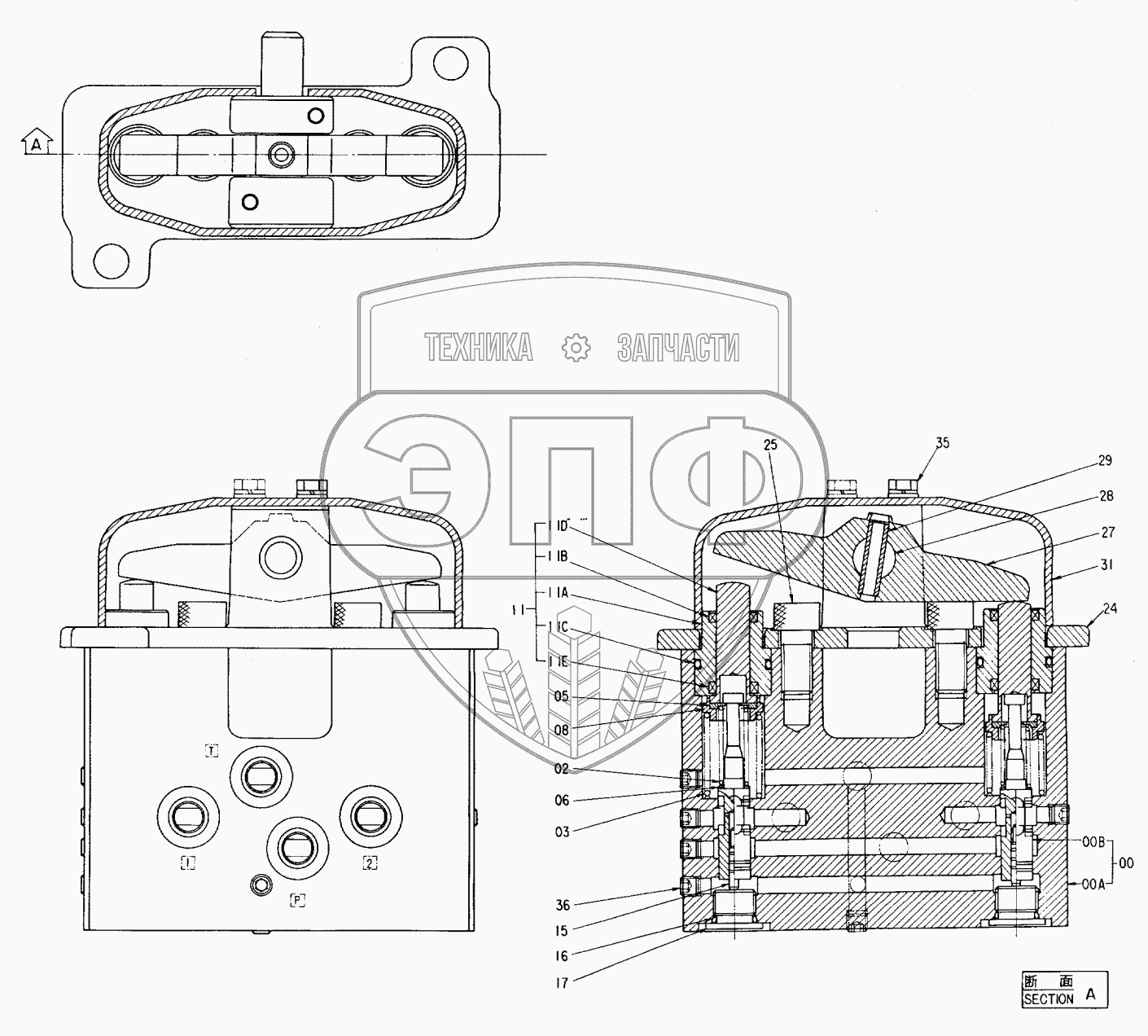 Каталог запасных частей к технике: Hitachi Компоненты EX-100WD. VALVE, PILOT