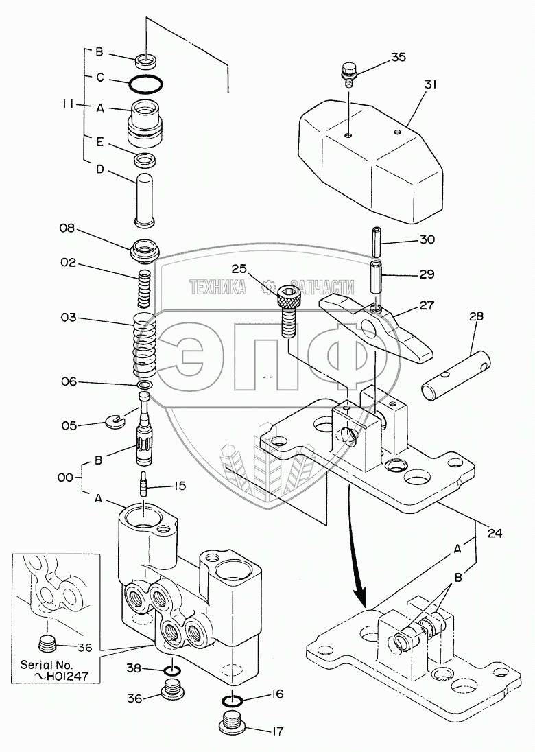 Каталог запасных частей к технике: Hitachi Компоненты EX-100WD. VALVE, PILOT
