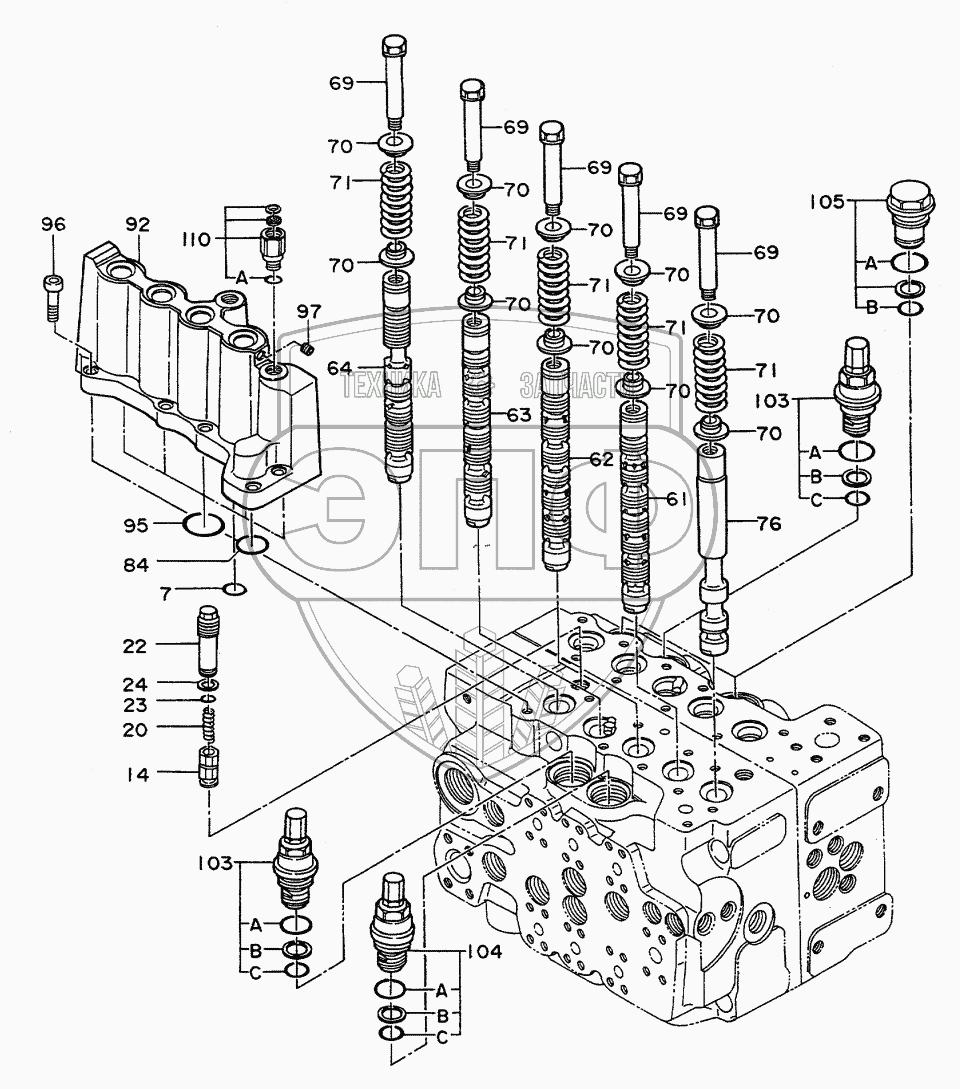 Каталог запасных частей к технике: Hitachi Компоненты EX-120. VALVE, CONTROL (3/5)