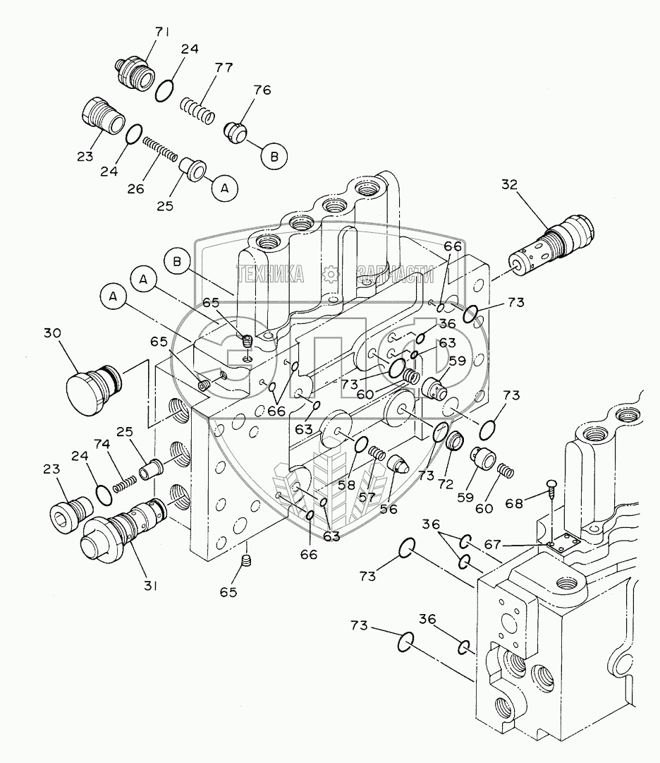 Каталог запасных частей к технике: Hitachi Компоненты EX-160WD. VALVE, CONTROL (4/4)