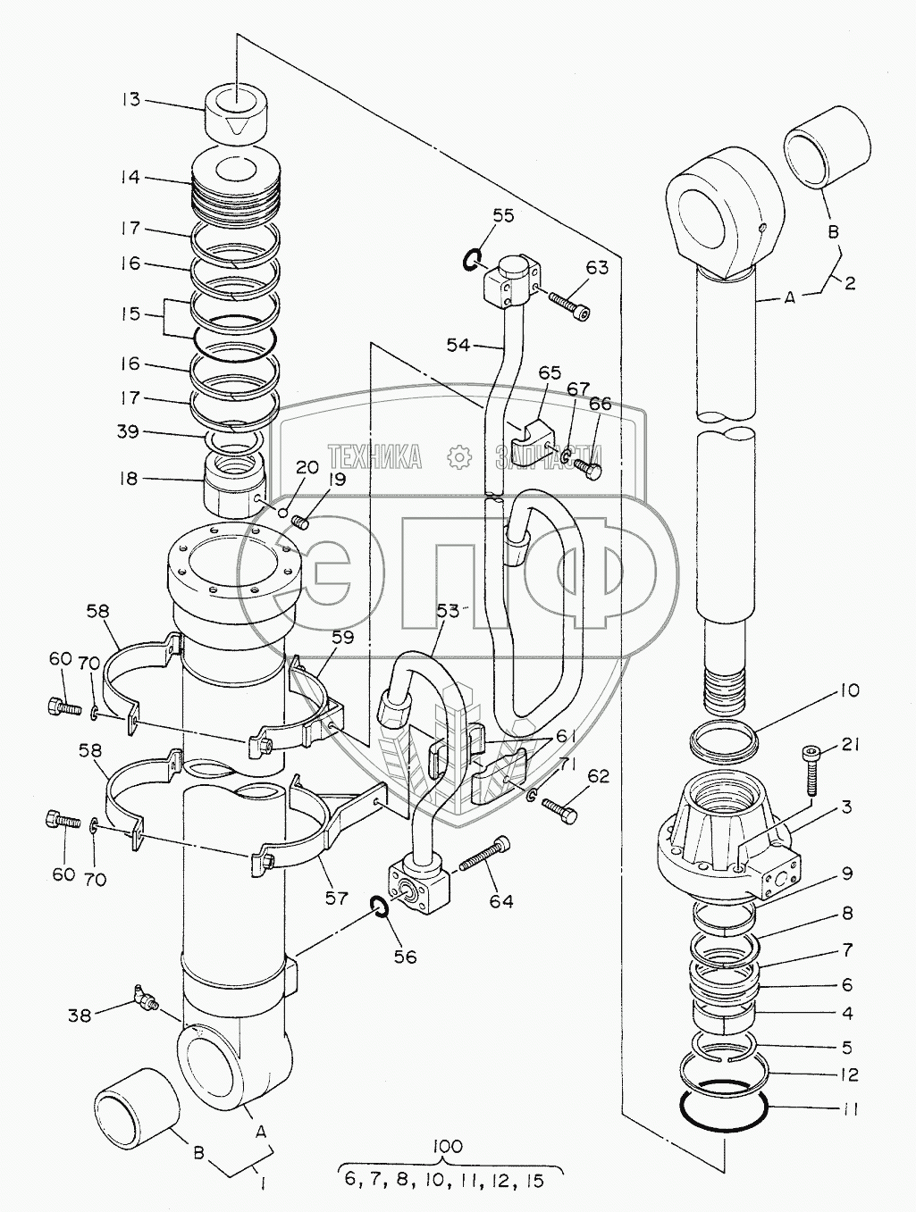 Каталог запасных частей к технике: Hitachi Компоненты EX-200. CYL., BOOM (L)