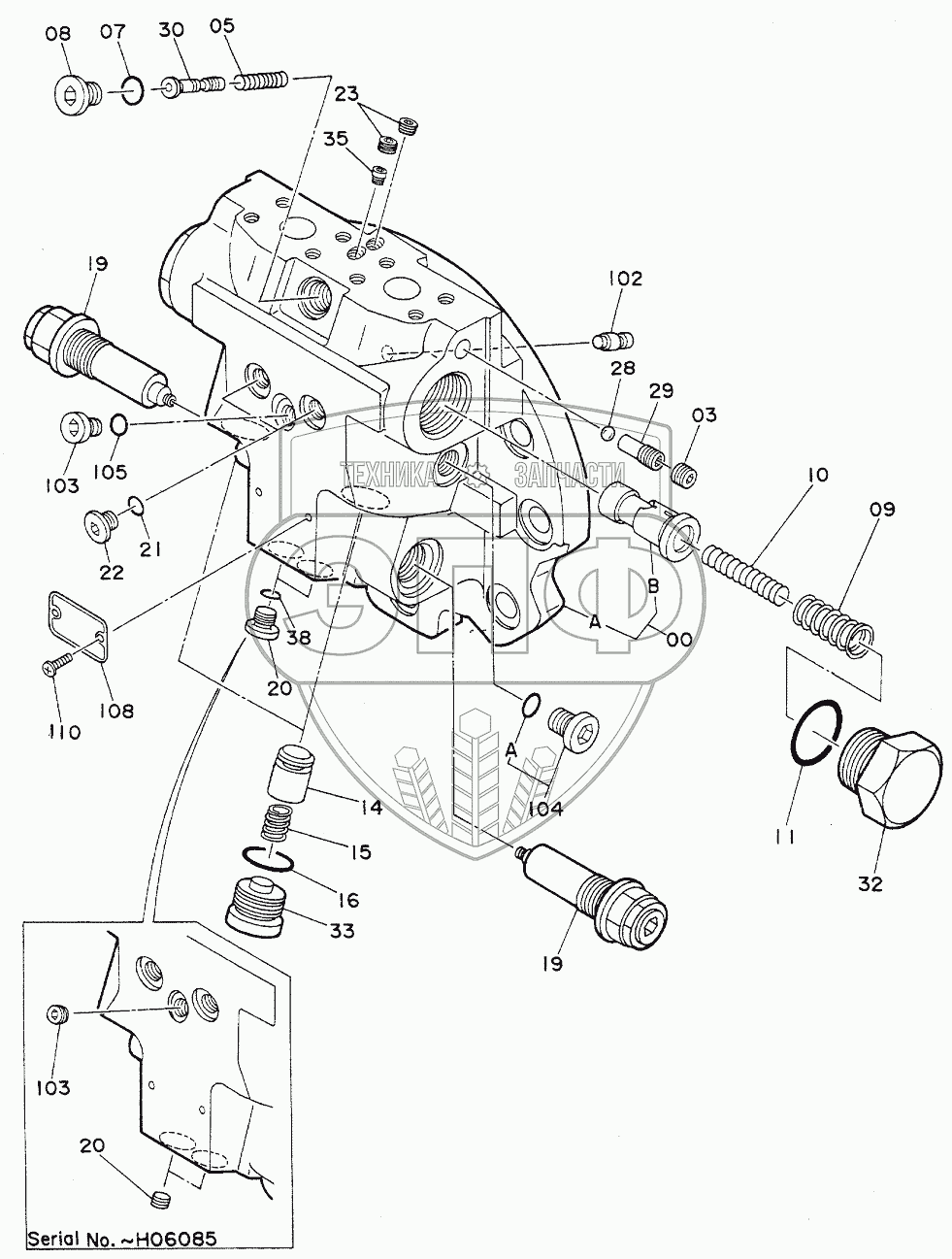 Каталог запасных частей к технике: Hitachi Компоненты EX-200. VALVE, BRAKE