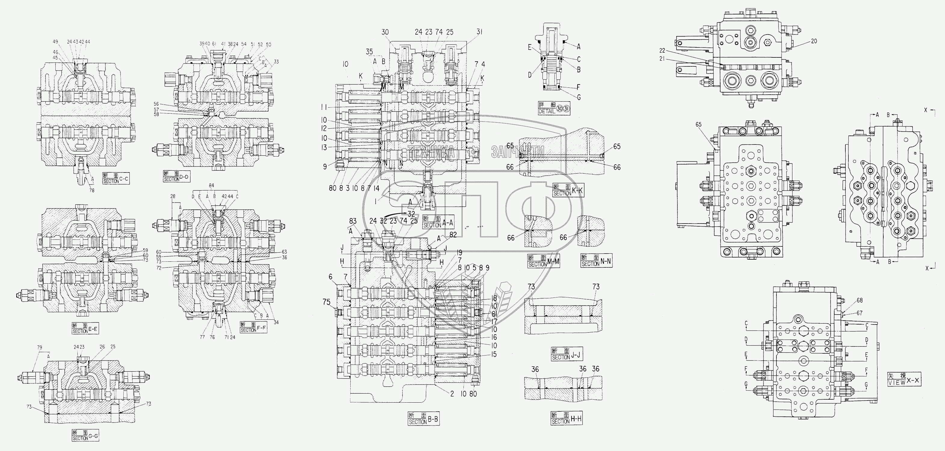 Каталог запасных частей к технике: Hitachi Компоненты EX-200. VALVE, CONTROL