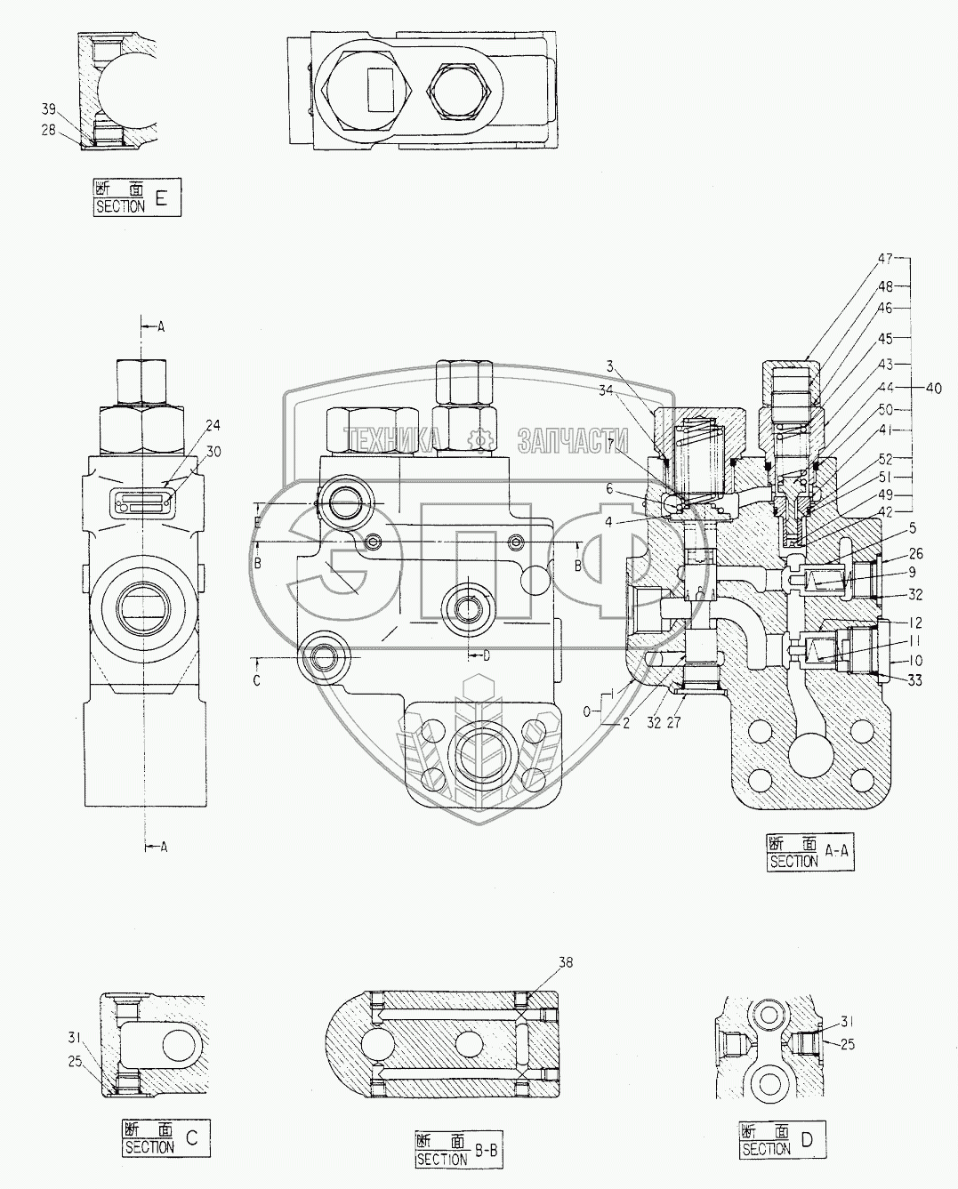Каталог запасных частей к технике: Hitachi Компоненты EX-200. VALVE, HOSE RUPTURE