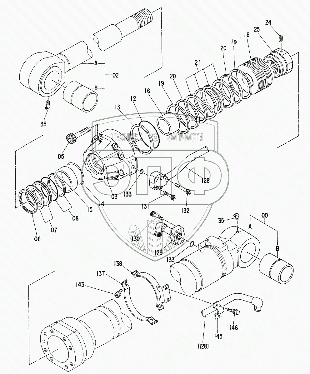 Каталог запасных частей к технике: Hitachi Компоненты EX-220. CYL.,BUCKET