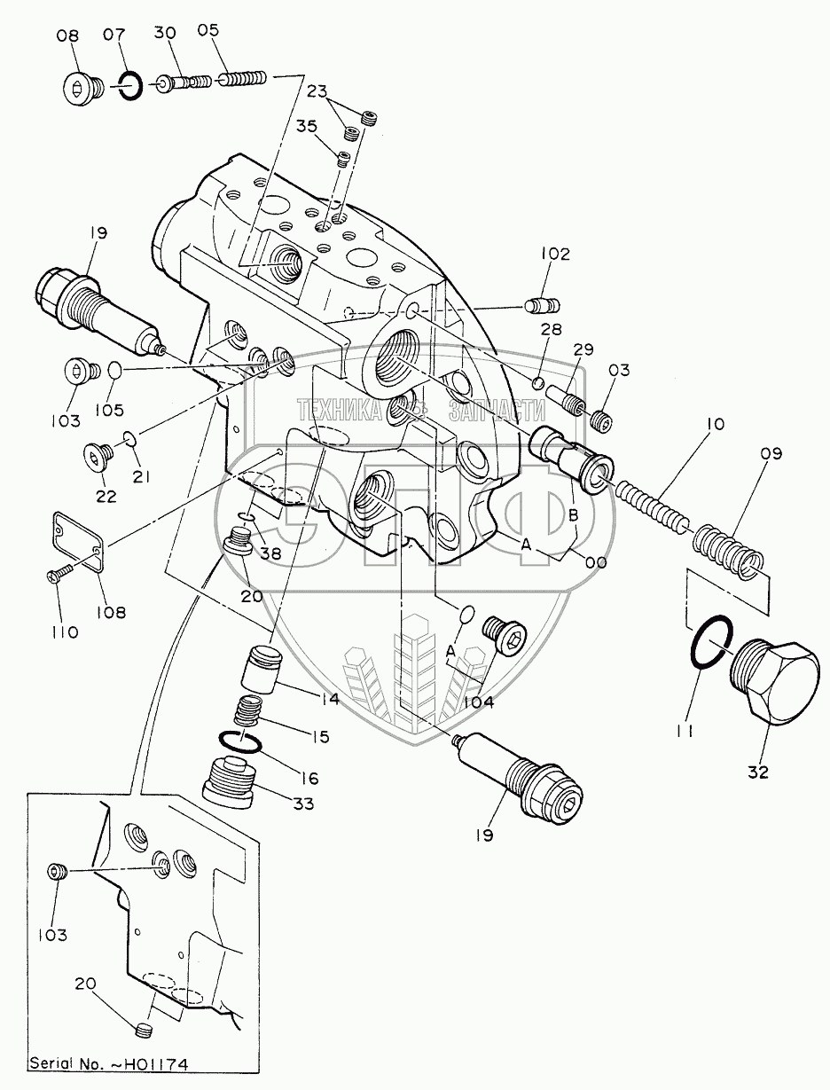 Каталог запасных частей к технике: Hitachi Компоненты EX-220. VALVE,BRAKE