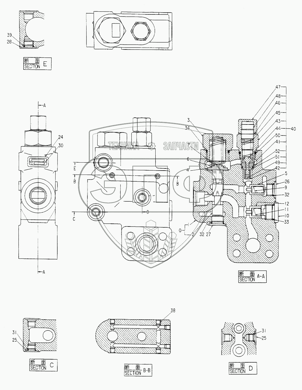 Каталог запасных частей к технике: Hitachi Компоненты EX-220. VALVE,HOSE RUPTURE
