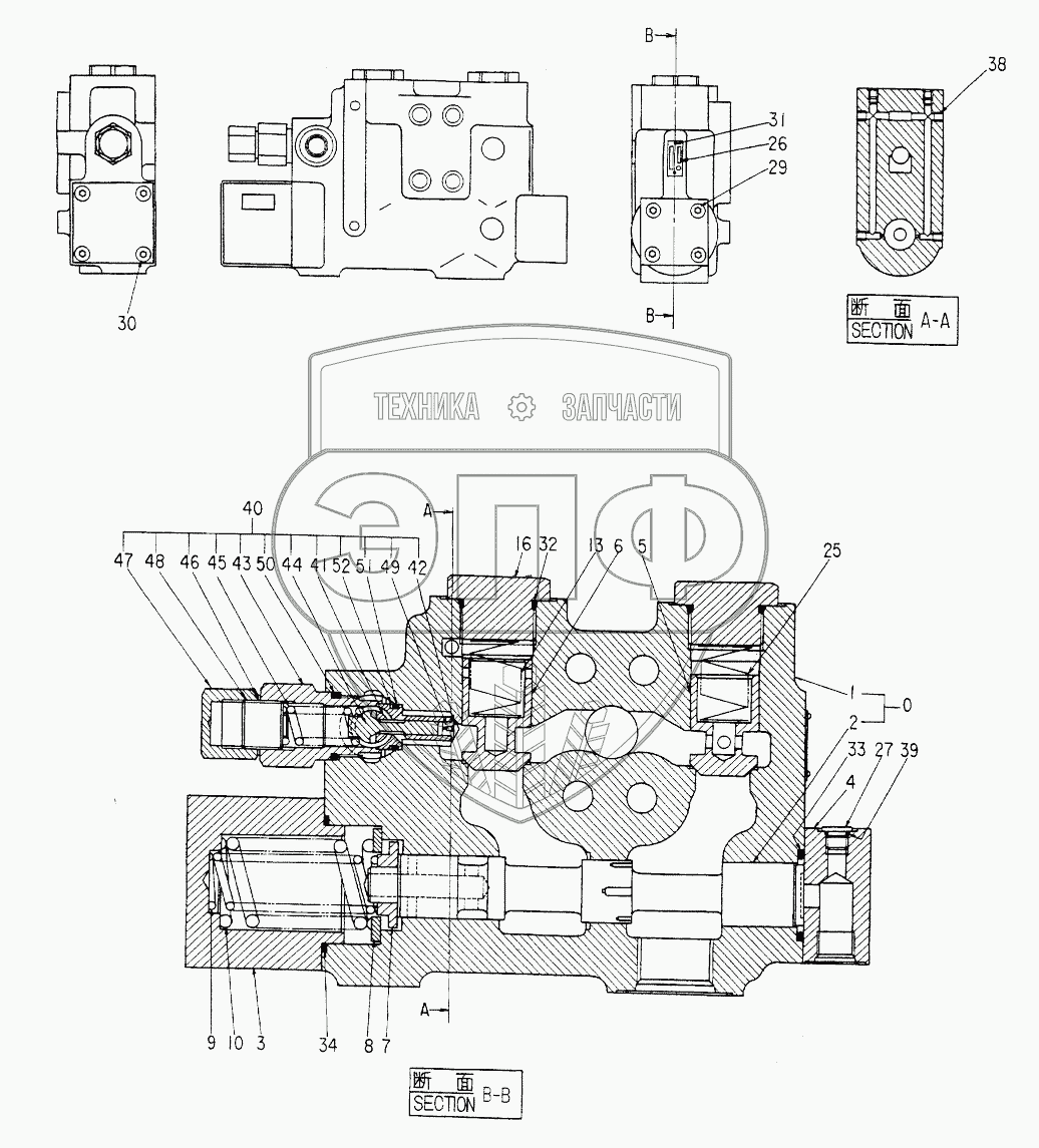Каталог запасных частей к технике: Hitachi Компоненты EX-220. VALVE,HOSE RUPTURE