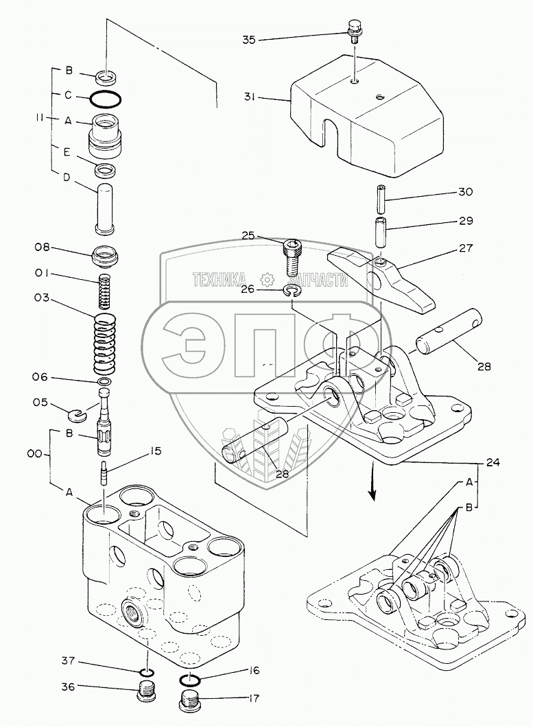 Каталог запасных частей к технике: Hitachi Компоненты EX-220. VALVE,PILOT