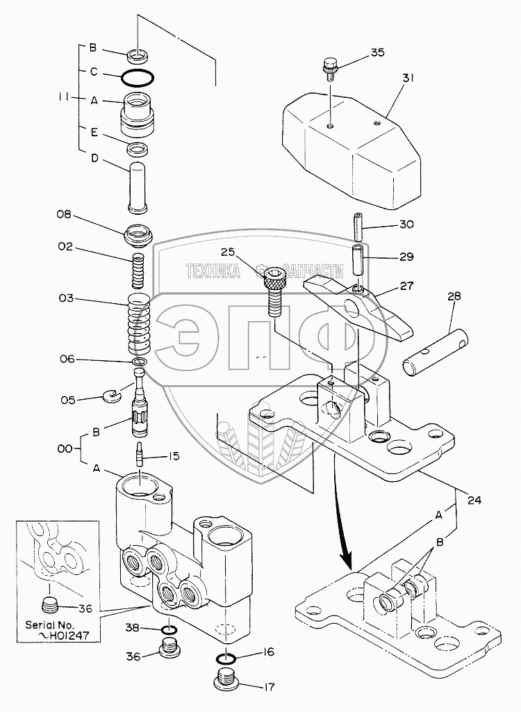 Каталог запасных частей к технике: Hitachi Компоненты EX-220. VALVE,PILOT