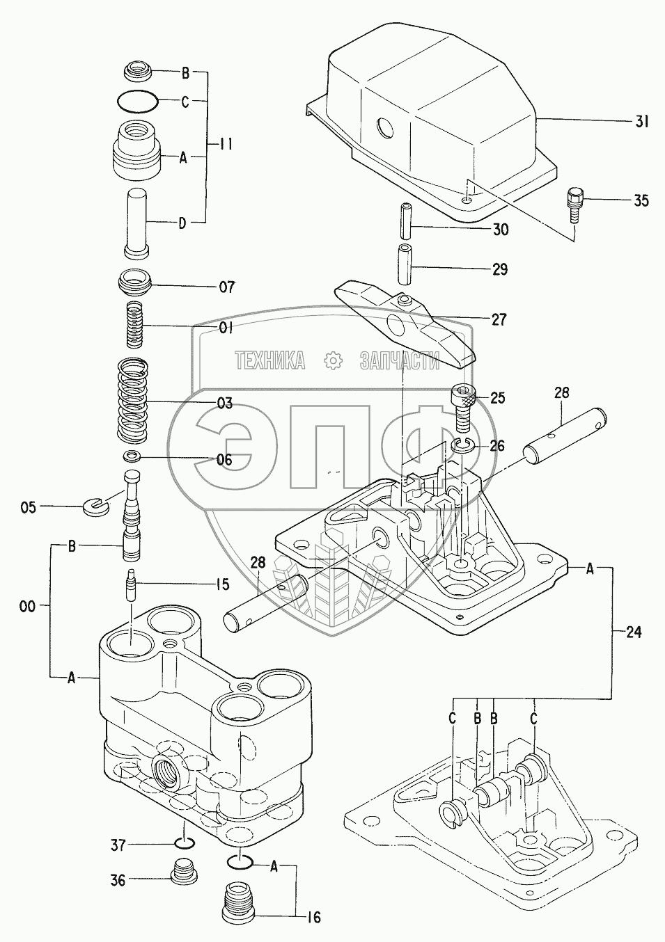 Каталог запасных частей к технике: Hitachi Компоненты EX-220-2. VALVE, PILOT
