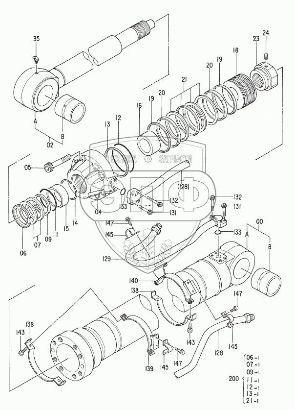 Каталог запасных частей к технике: Hitachi Компоненты EX-270. CYL., ARM