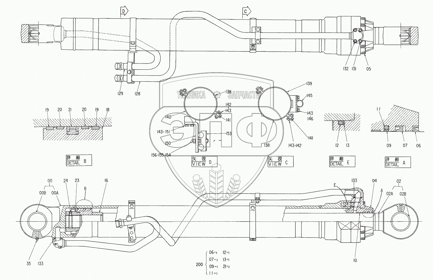 Каталог запасных частей к технике: Hitachi Компоненты EX-270. CYL., BOOM (L)