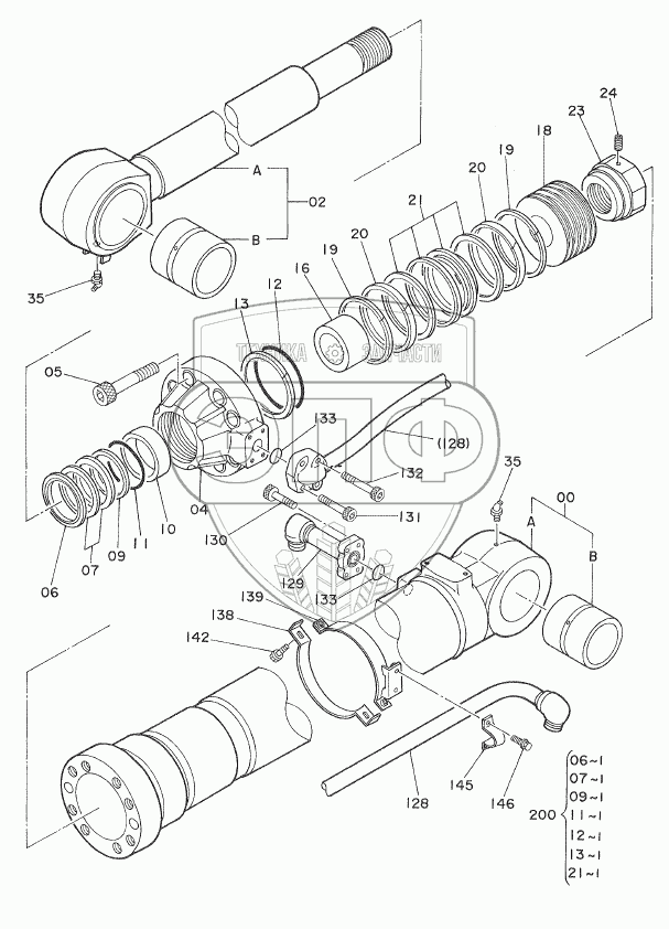 Каталог запасных частей к технике: Hitachi Компоненты EX-270. CYL., BUCKET