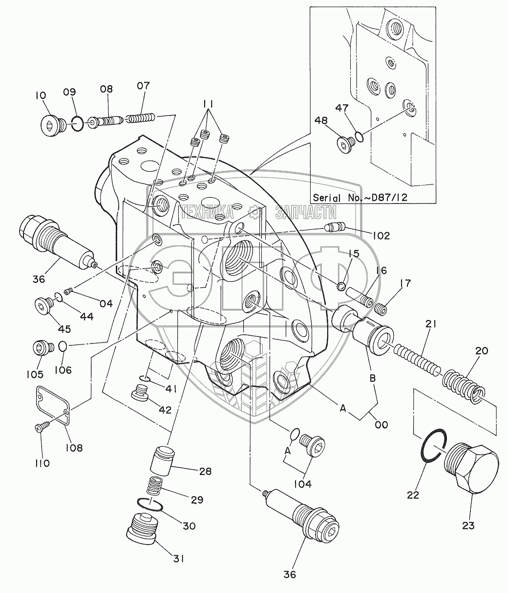 Каталог запасных частей к технике: Hitachi Компоненты EX-270. VALVE, BRAKE