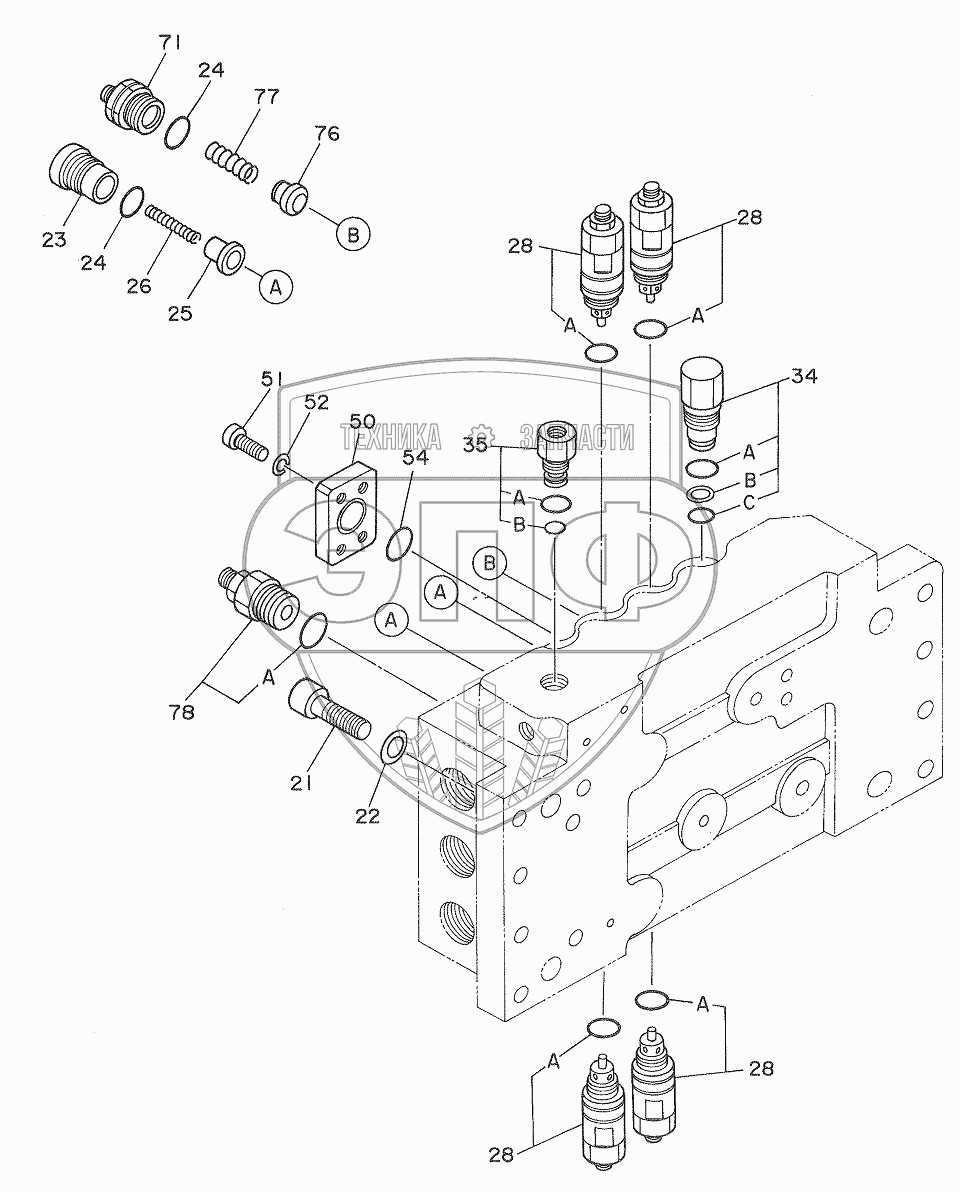 Каталог запасных частей к технике: Hitachi Компоненты EX-270. VALVE, CONTROL (3/4)
