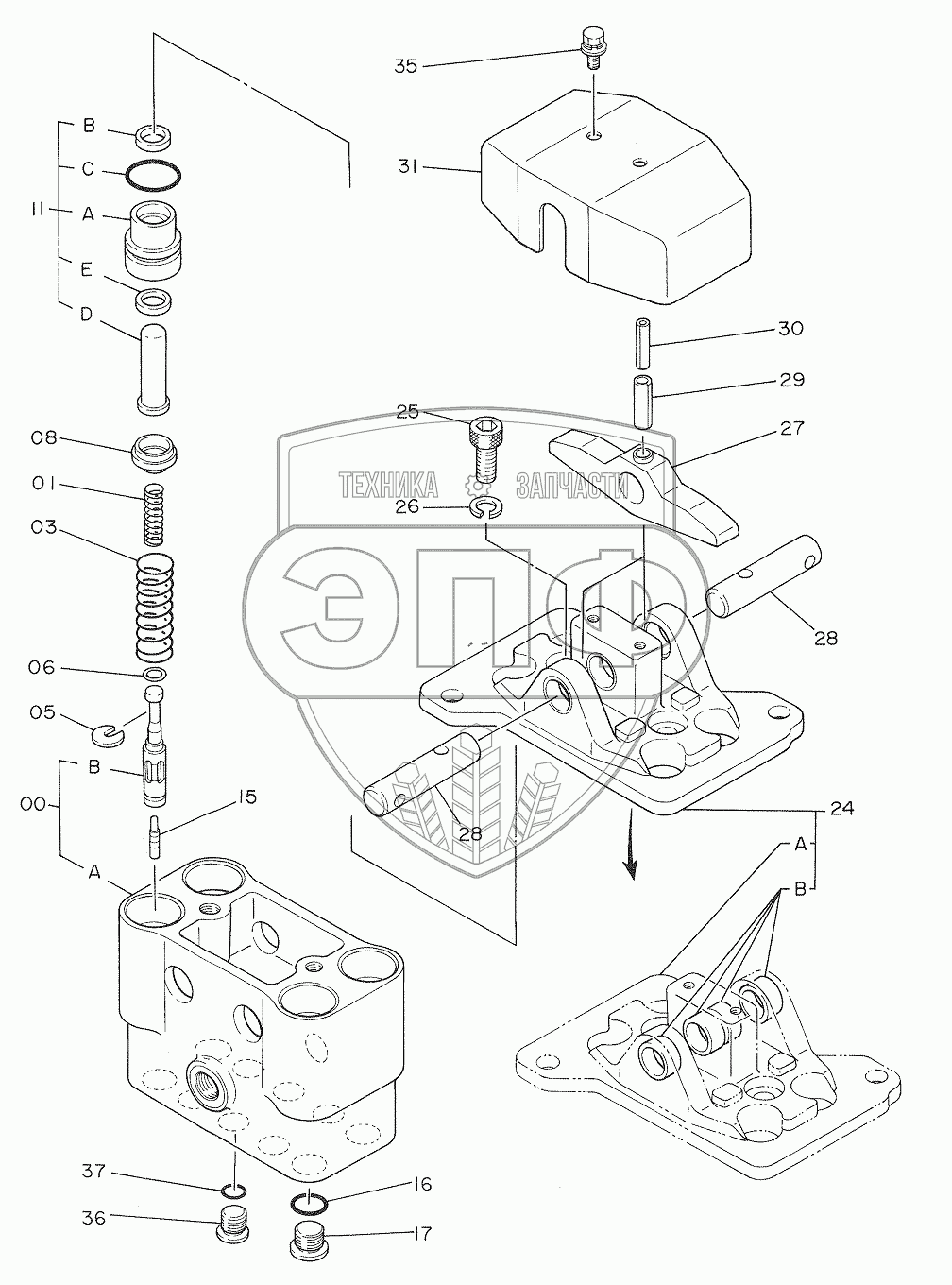 Каталог запасных частей к технике: Hitachi Компоненты EX-270. VALVE, PILOT
