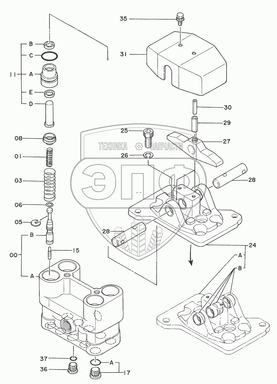 Каталог запасных частей к технике: Hitachi Компоненты EX-270. VALVE, PILOT