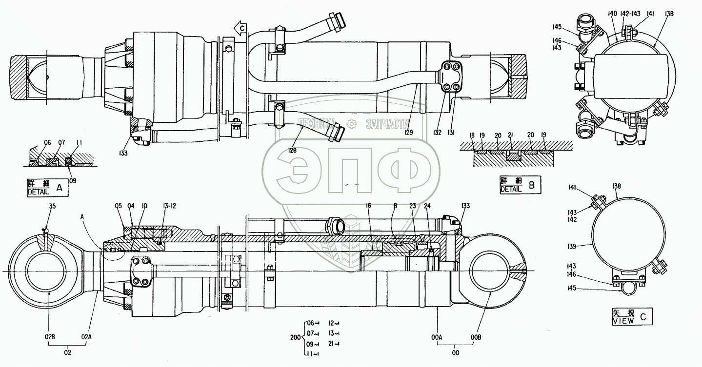 Каталог запасных частей к технике: Hitachi Компоненты EX-300. CYL.,ARM