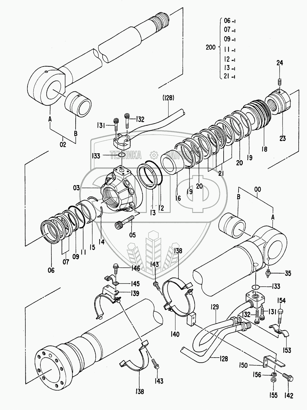 Каталог запасных частей к технике: Hitachi Компоненты EX-300. CYL.,BOOM (R)