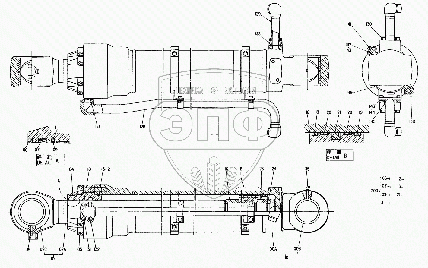 Каталог запасных частей к технике: Hitachi Компоненты EX-300. CYL.,BUCKET
