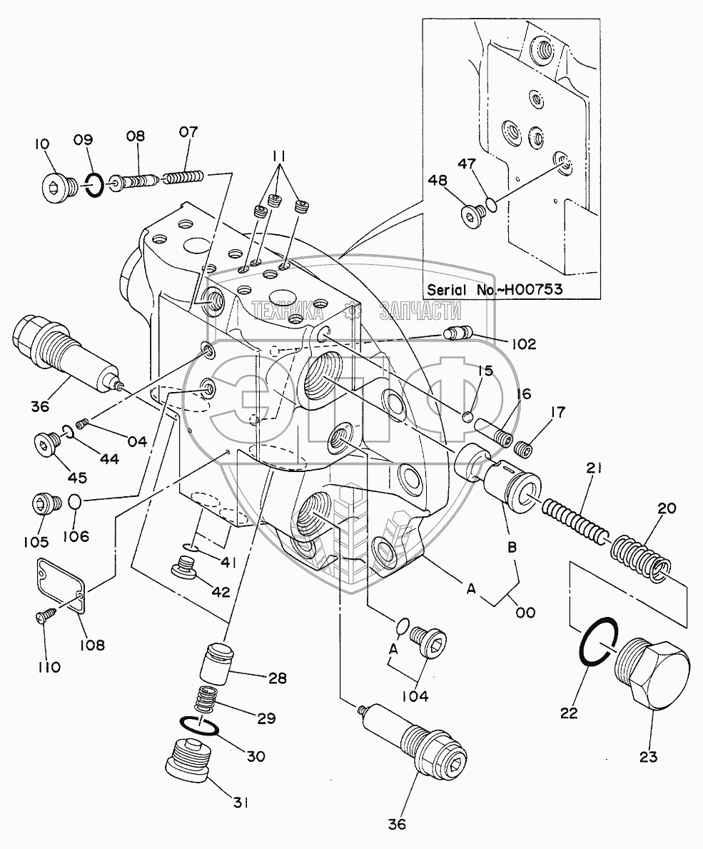 Каталог запасных частей к технике: Hitachi Компоненты EX-300. VALVE,BRAKE