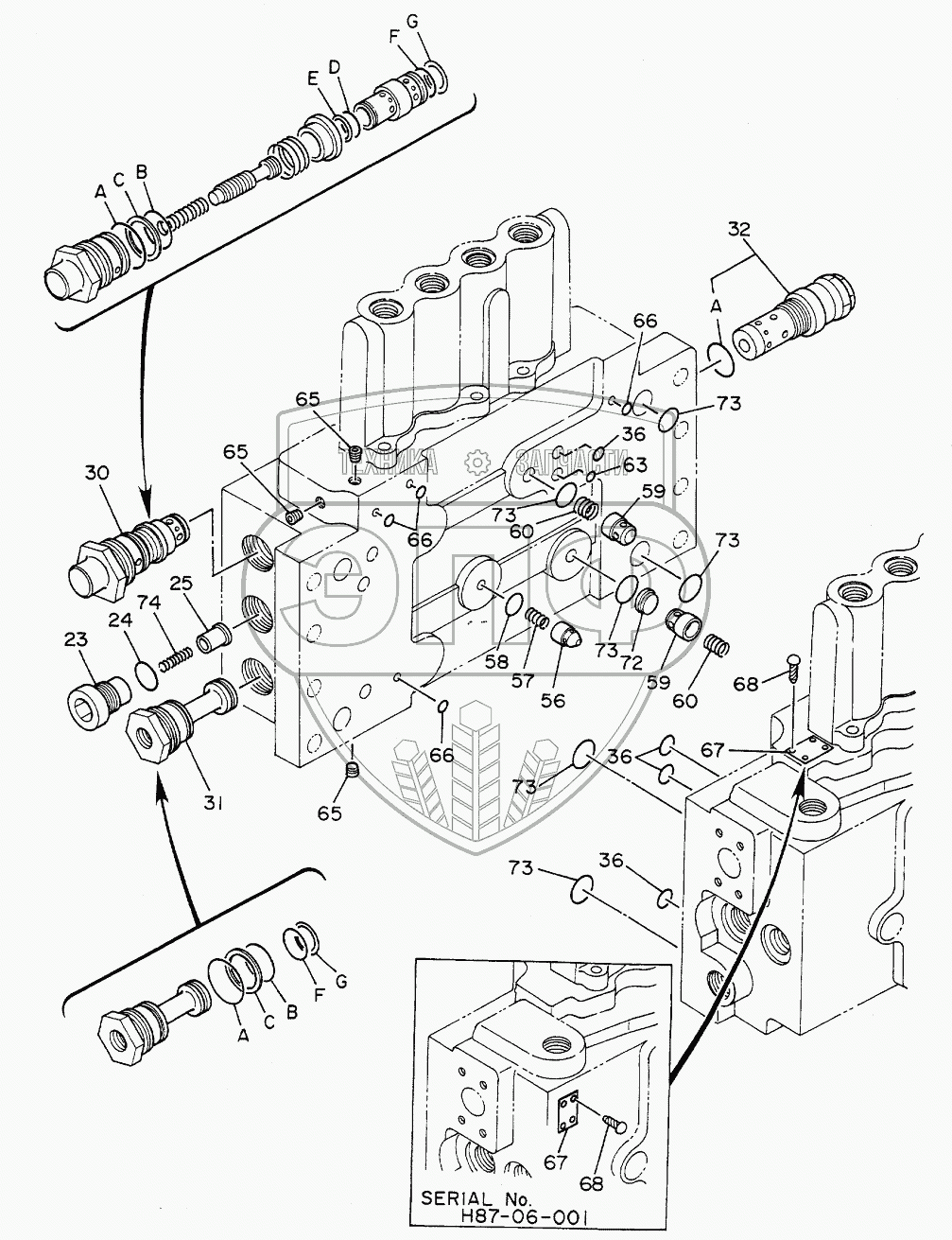 Каталог запасных частей к технике: Hitachi Компоненты EX-300. VALVE,CONTROL (4/4)