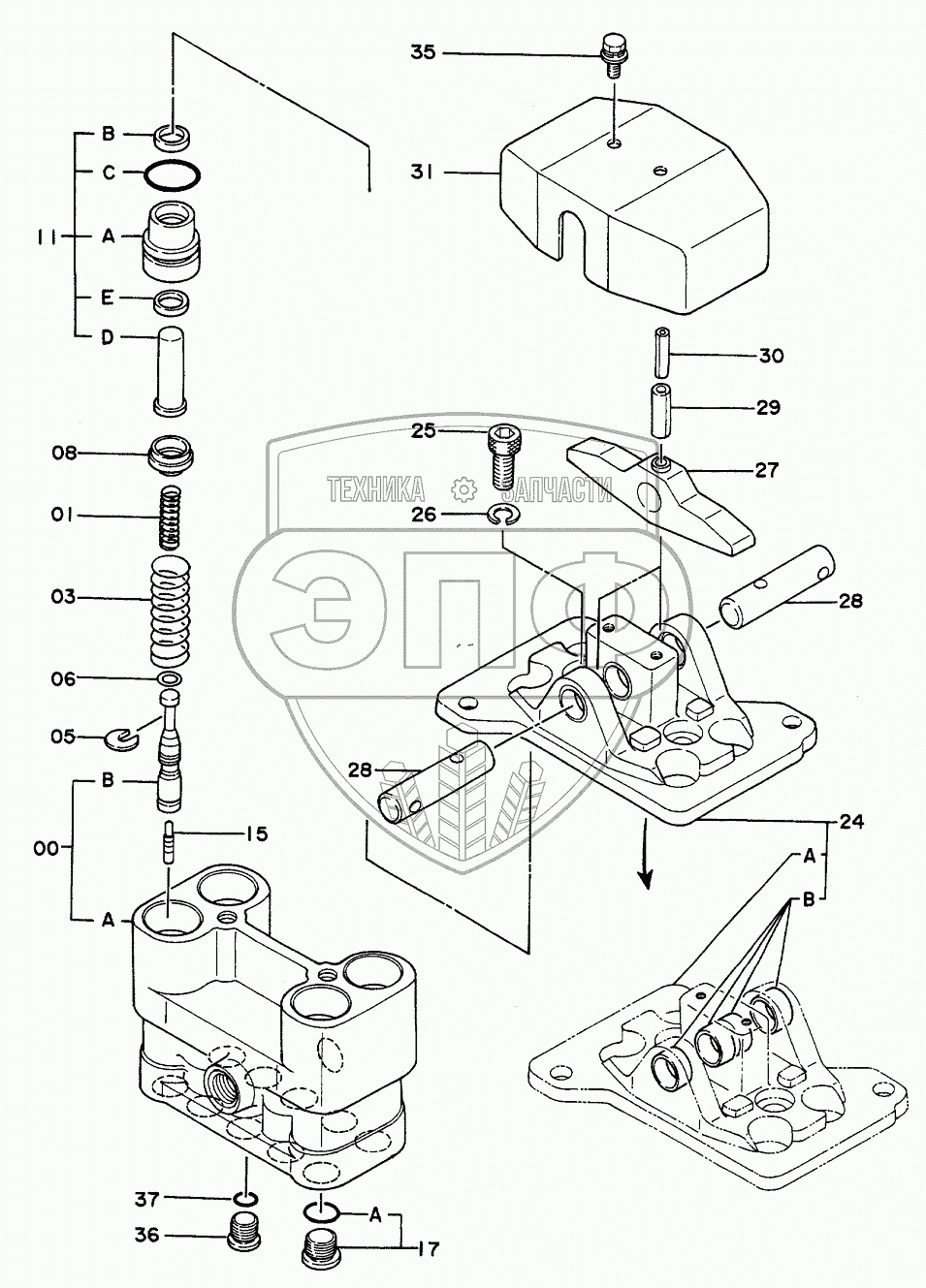 Каталог запасных частей к технике: Hitachi Компоненты EX-300. VALVE,PILOT