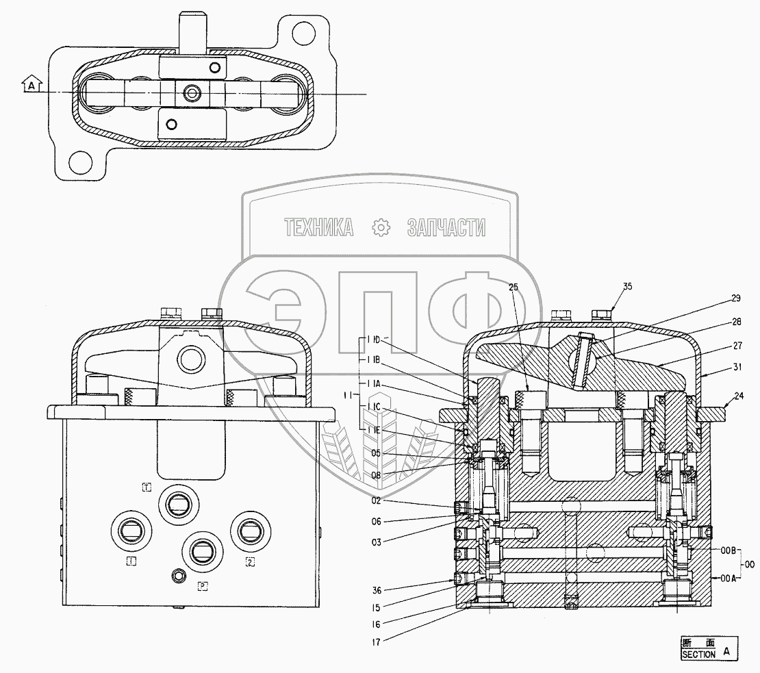 Каталог запасных частей к технике: Hitachi Компоненты EX-300. VALVE,PILOT
