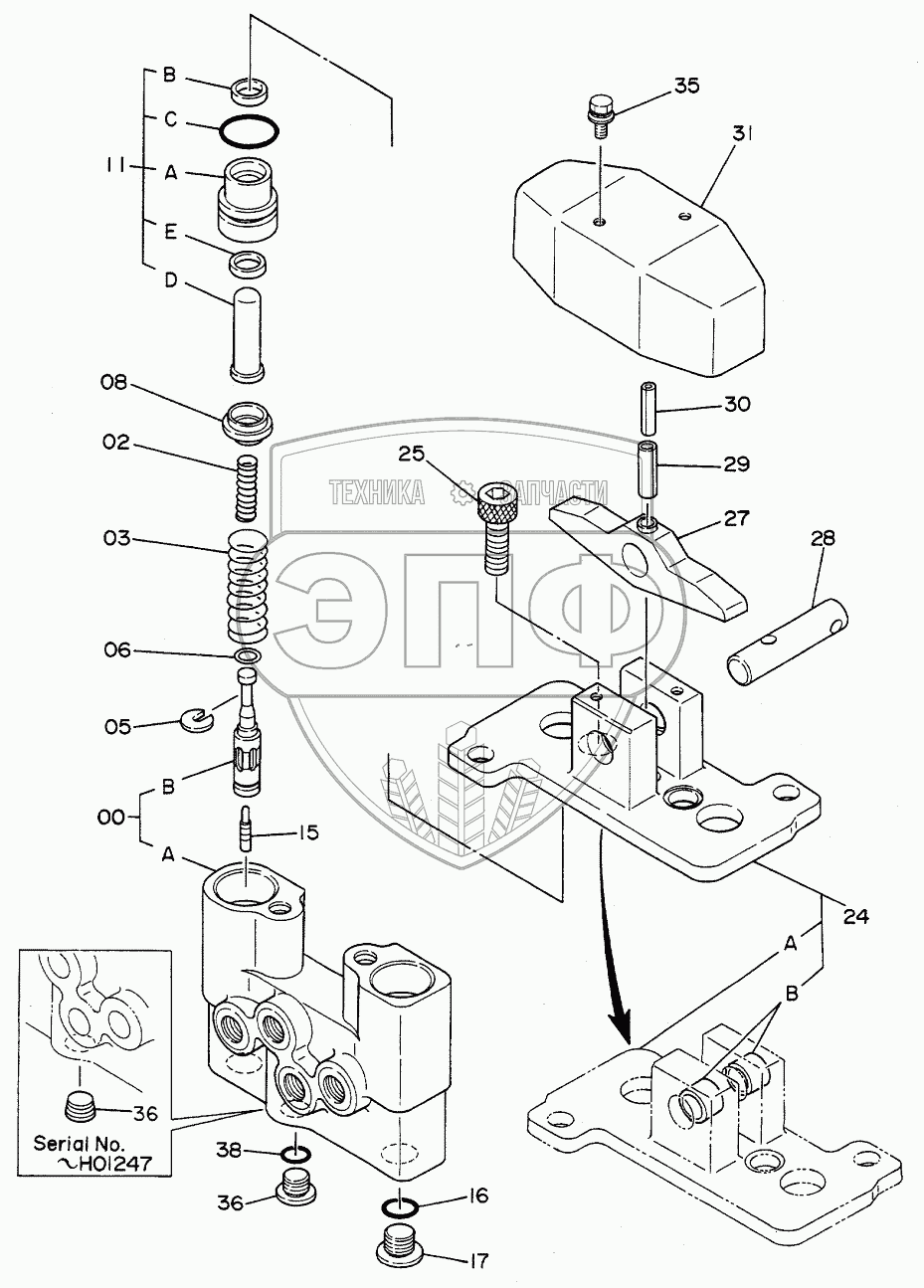 Каталог запасных частей к технике: Hitachi Компоненты EX-300. VALVE,PILOT