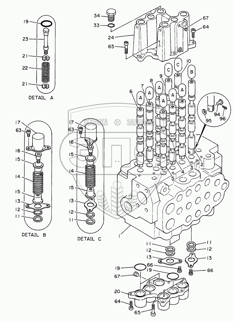 Каталог запасных частей к технике: Hitachi Компоненты EX-60. VALVE, CONTROL (1/3)