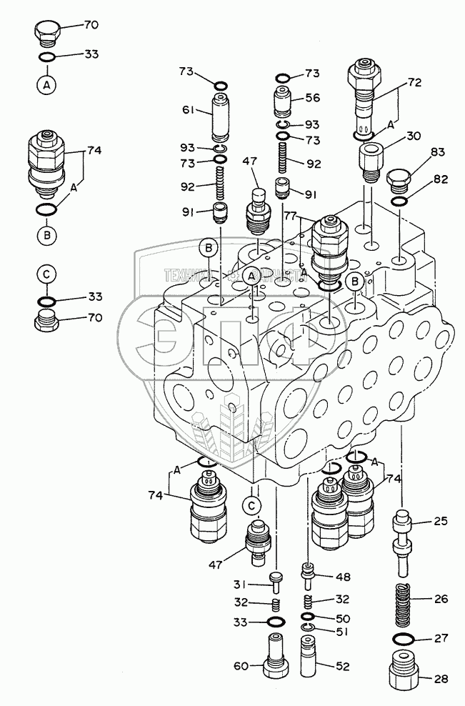 Каталог запасных частей к технике: Hitachi Компоненты EX-60. VALVE, CONTROL (3/3)
