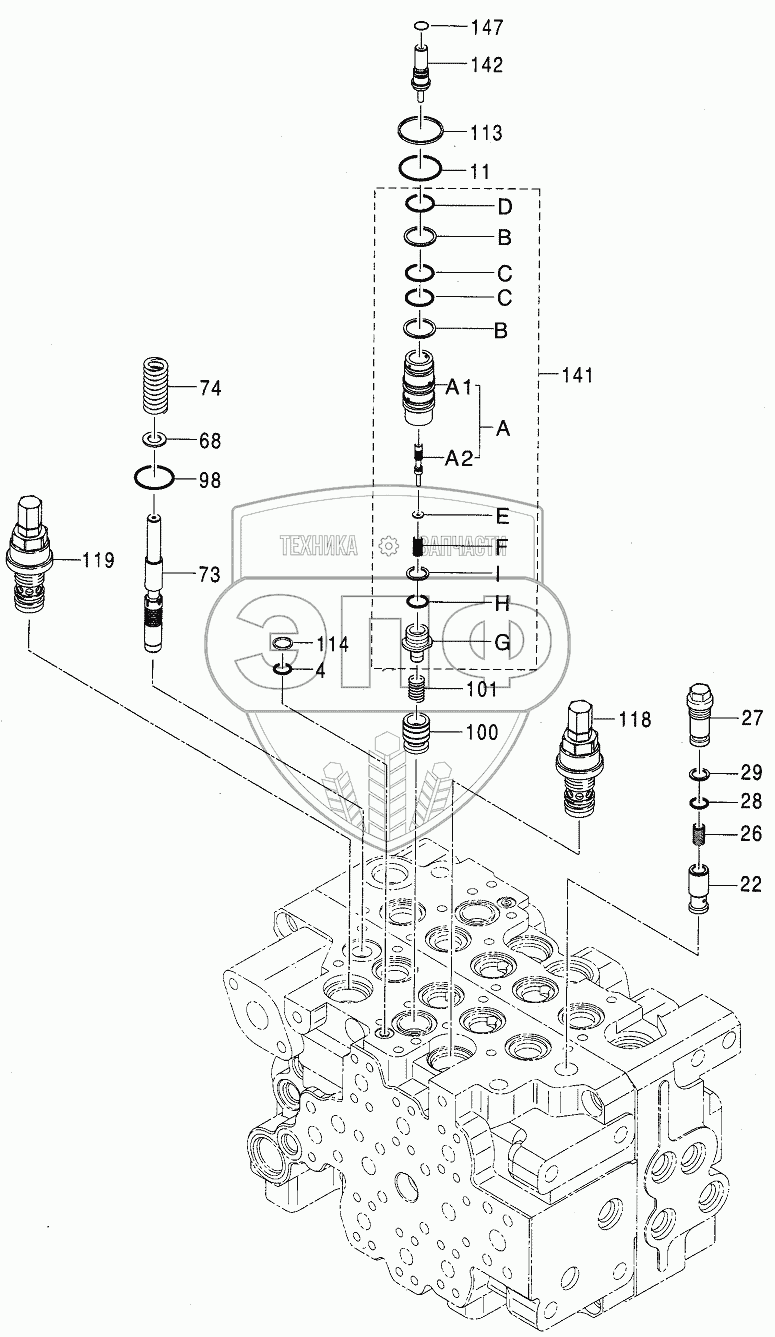 Каталог запасных частей к технике: Hitachi Компоненты ZX-110. VALVE, CONTROL (7/8)