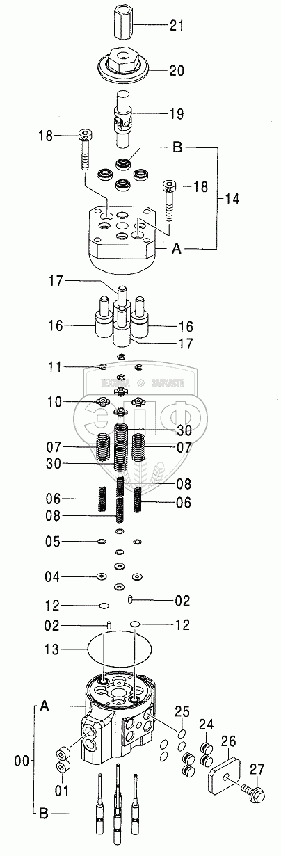 Каталог запасных частей к технике: Hitachi Компоненты ZX-110. VALVE, PILOT (FRONT & SWING)