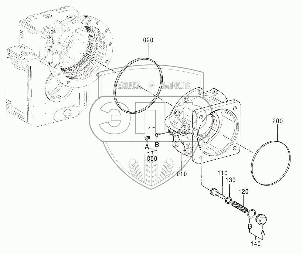 Каталог запасных частей к технике: Hitachi Компоненты ZX-160W. TRANSMISSION (1)