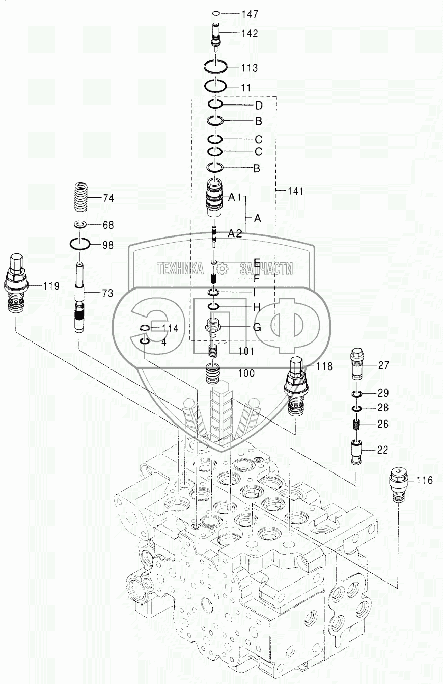 Каталог запасных частей к технике: Hitachi Компоненты ZX-160W. VALVE, CONTROL (7)