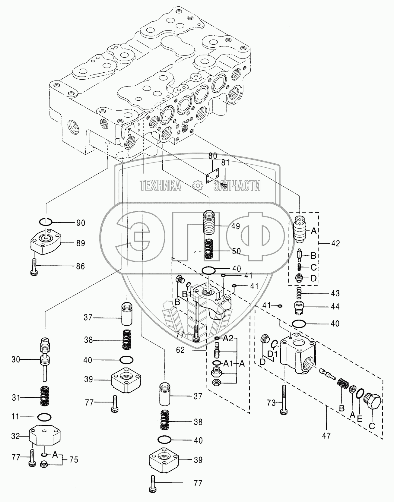 Каталог запасных частей к технике: Hitachi Компоненты ZX-200. VALVE, CONTROL (2/5)