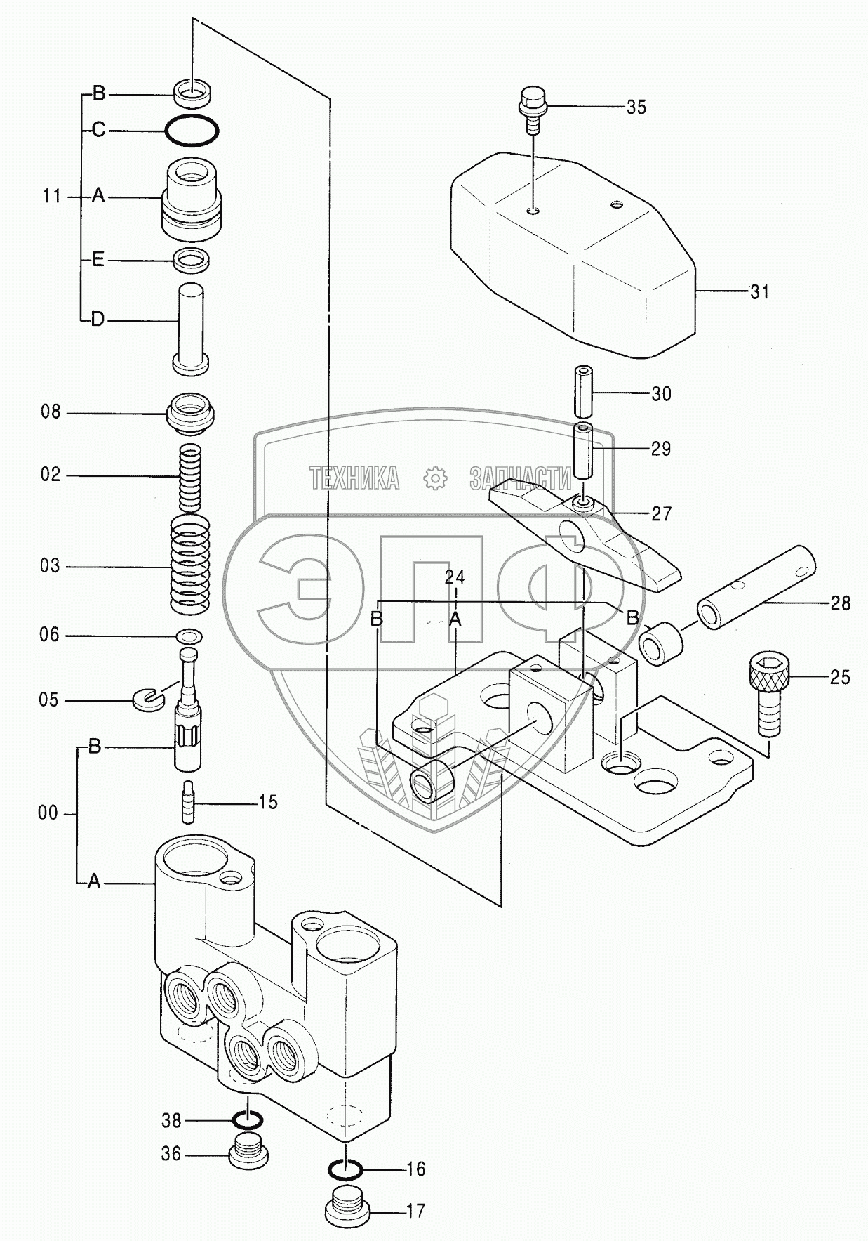 Каталог запасных частей к технике: Hitachi Компоненты ZX-200. VALVE, PILOT