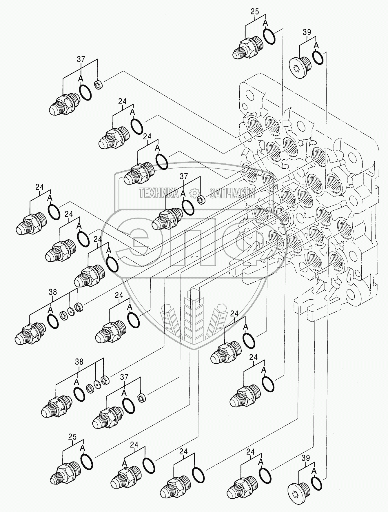 Каталог запасных частей к технике: Hitachi Компоненты ZX-200. VALVE, SHUTTLE (3/5)