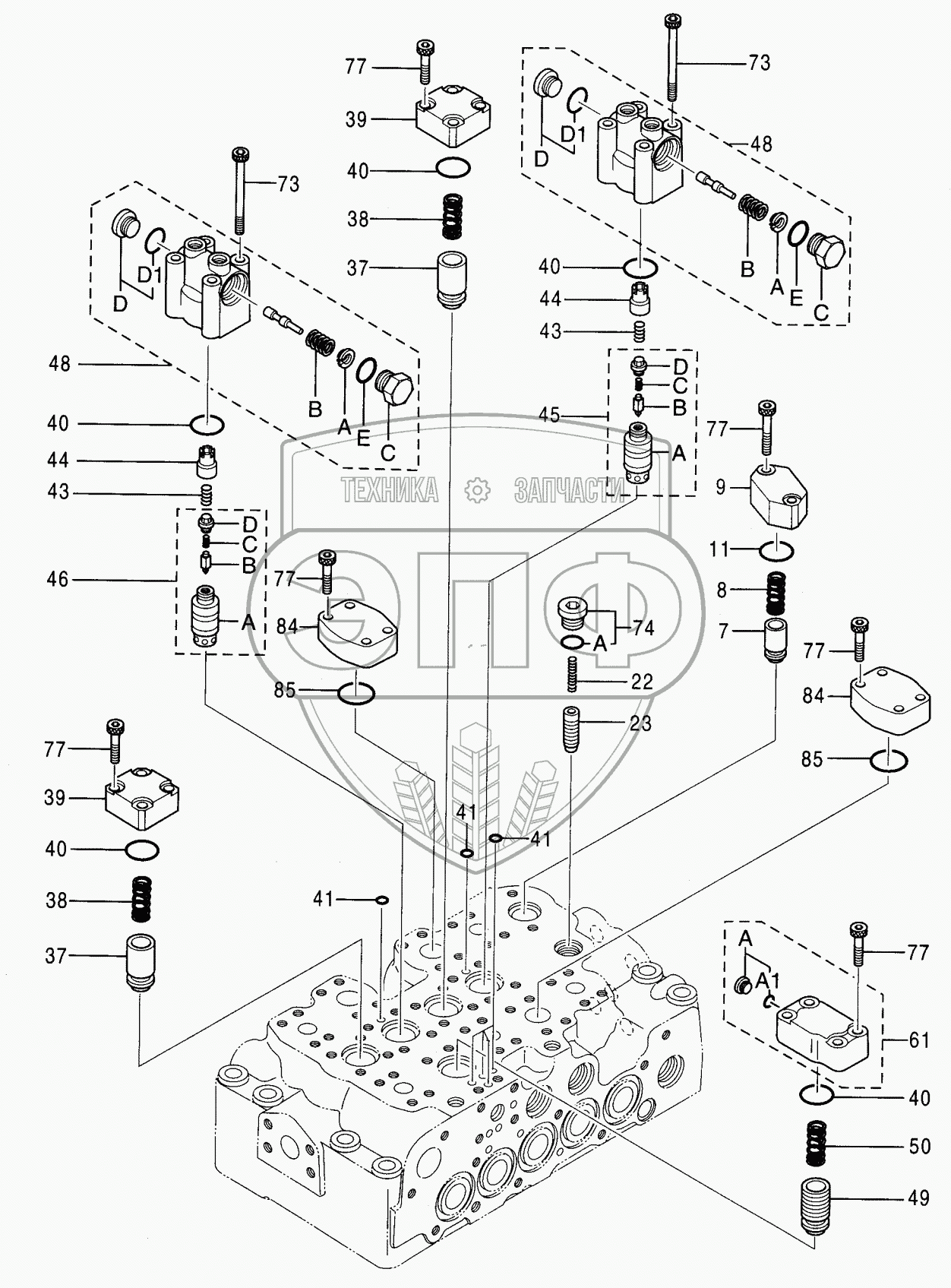Каталог запасных частей к технике: Hitachi Компоненты ZX-230. VALVE, CONTROL (1/5)