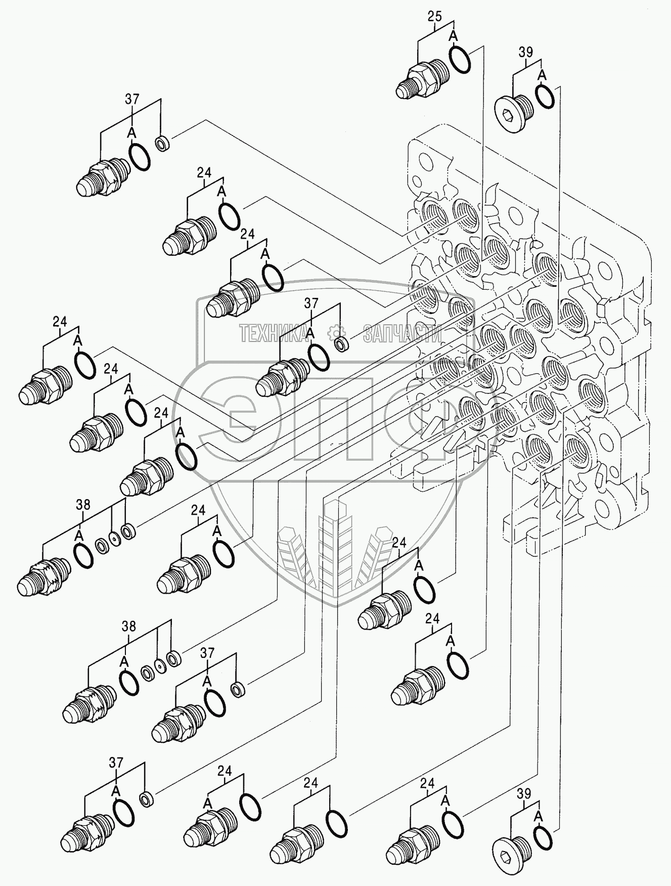 Каталог запасных частей к технике: Hitachi Компоненты ZX-230. VALVE, SHUTTLE (3/5)