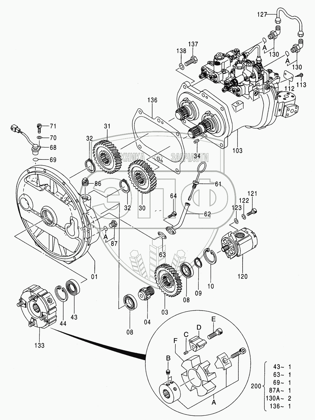 Каталог запасных частей к технике: Hitachi Компоненты ZX-270. PUMP, DEVICE