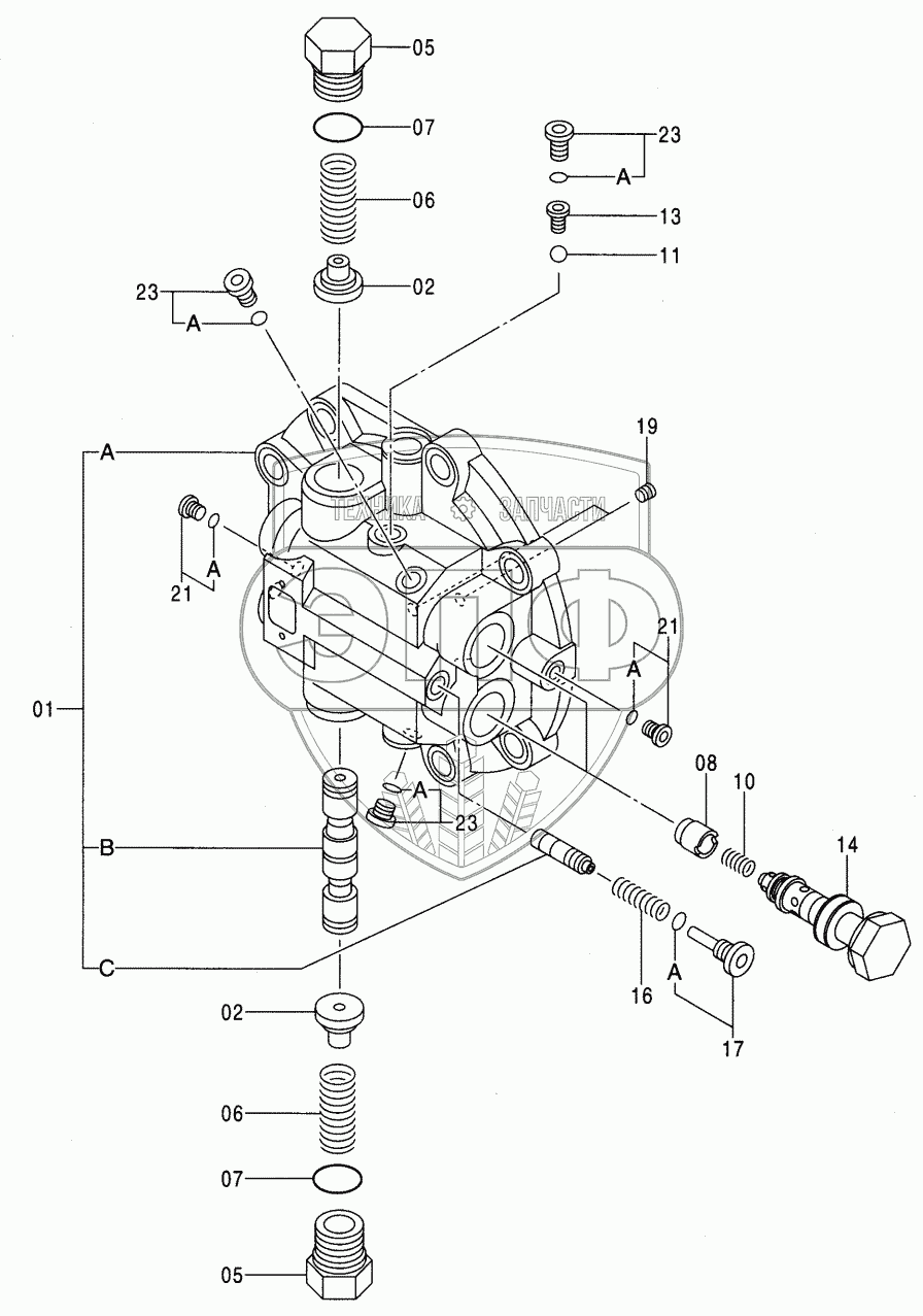 Каталог запасных частей к технике: Hitachi Компоненты ZX-270. VALVE, BRAKE