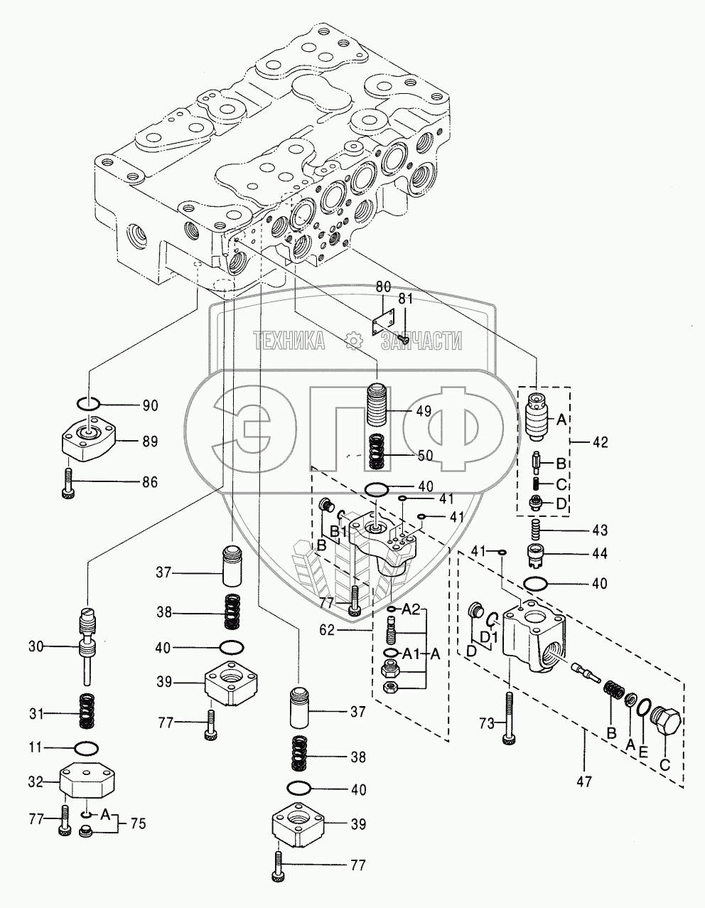 Каталог запасных частей к технике: Hitachi Компоненты ZX-270. VALVE, CONTROL (2/5)