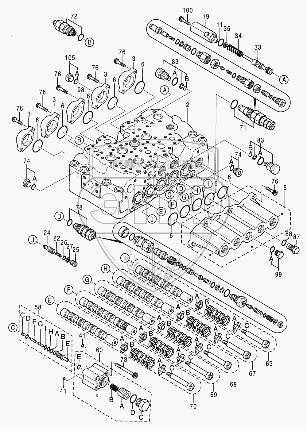 Каталог запасных частей к технике: Hitachi Компоненты ZX-270. VALVE, CONTROL (3/5)