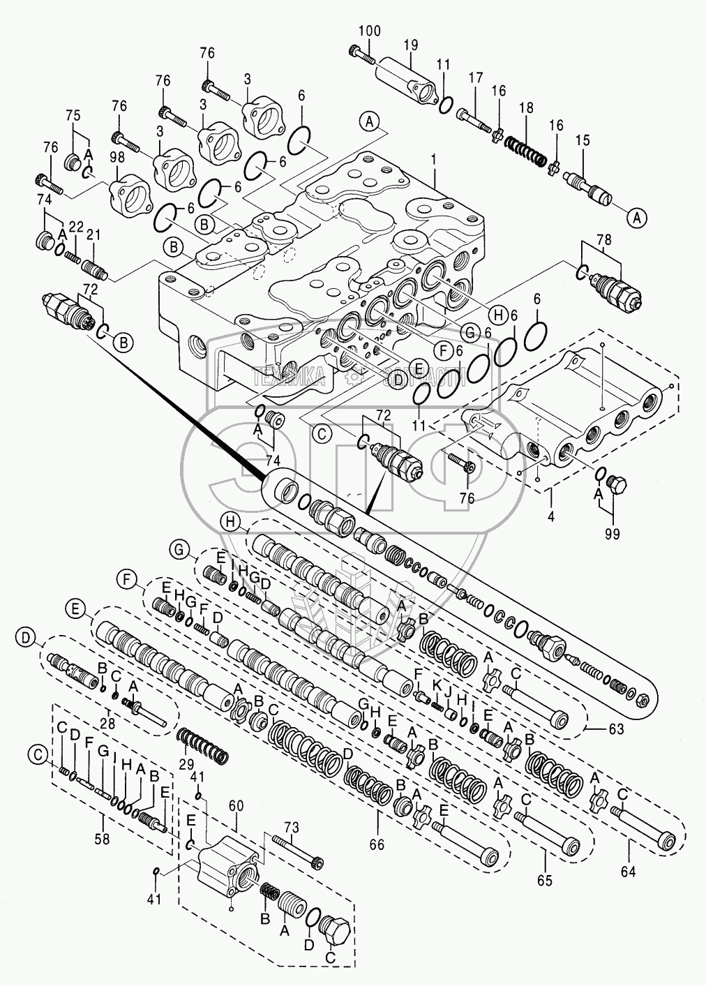 Каталог запасных частей к технике: Hitachi Компоненты ZX-270. VALVE, CONTROL (4/5)