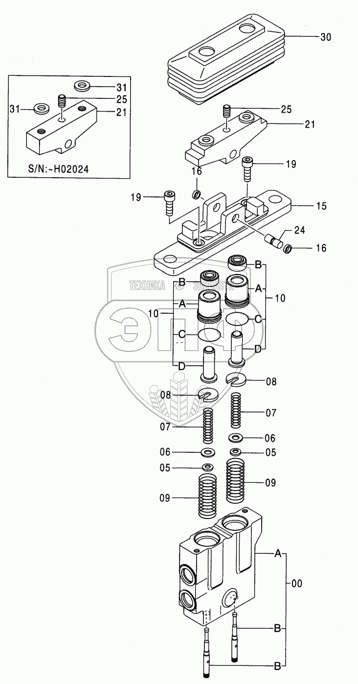 Каталог запасных частей к технике: Hitachi Компоненты ZX-270. VALVE, PILOT