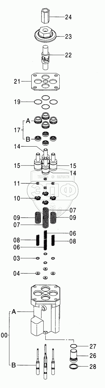 Каталог запасных частей к технике: Hitachi Компоненты ZX-270. VALVE, PILOT (FRONT & SWING)