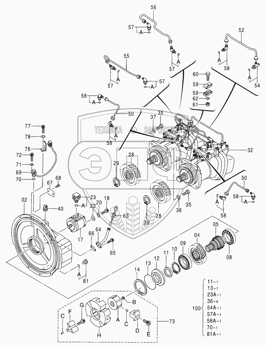 Каталог запасных частей к технике: Hitachi Компоненты ZX-330. PUMP, DEVICE