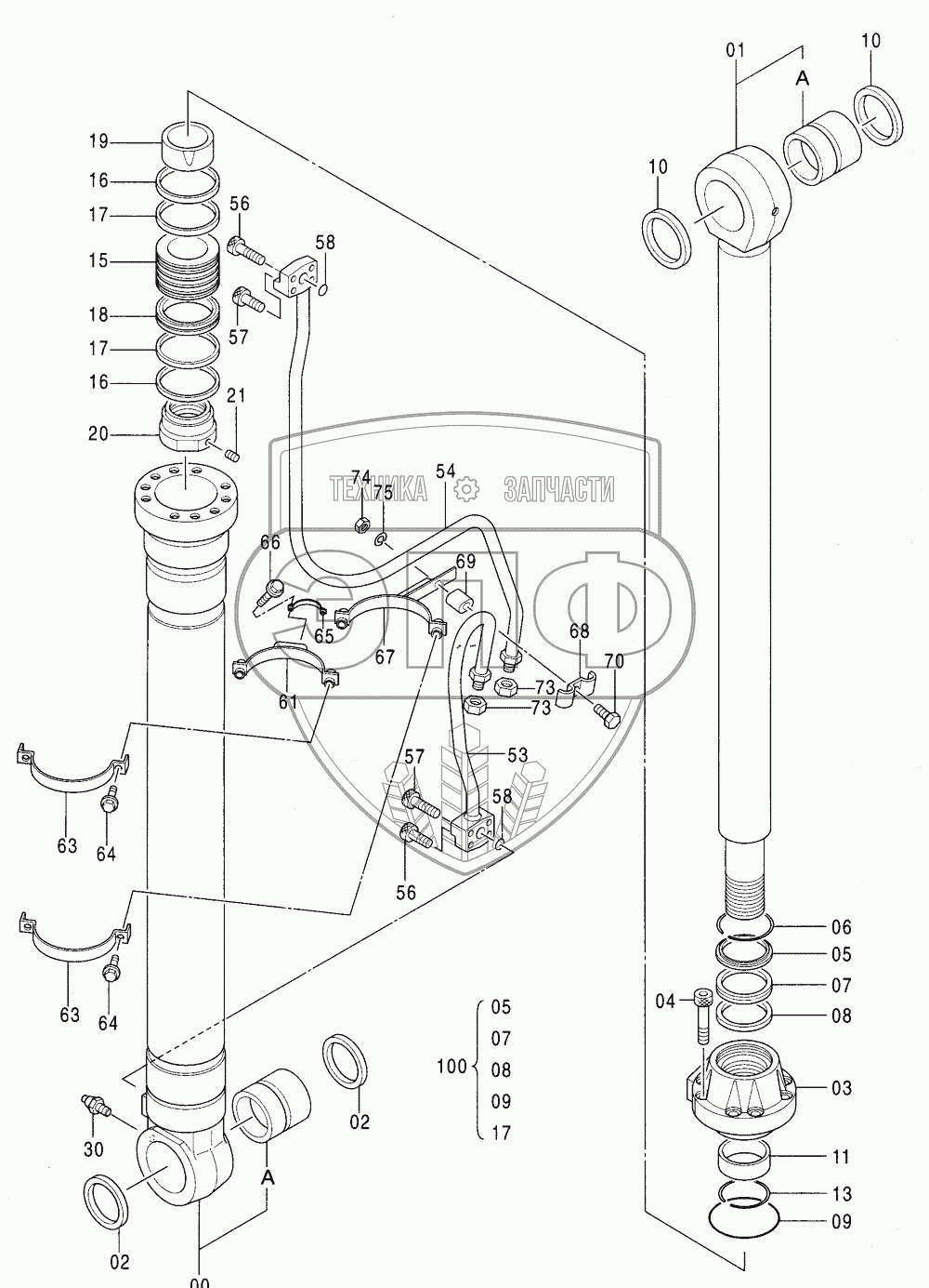 Каталог запасных частей к технике: Hitachi Компоненты ZX-450. CYL.,BOOM (L) (BACKHOE)